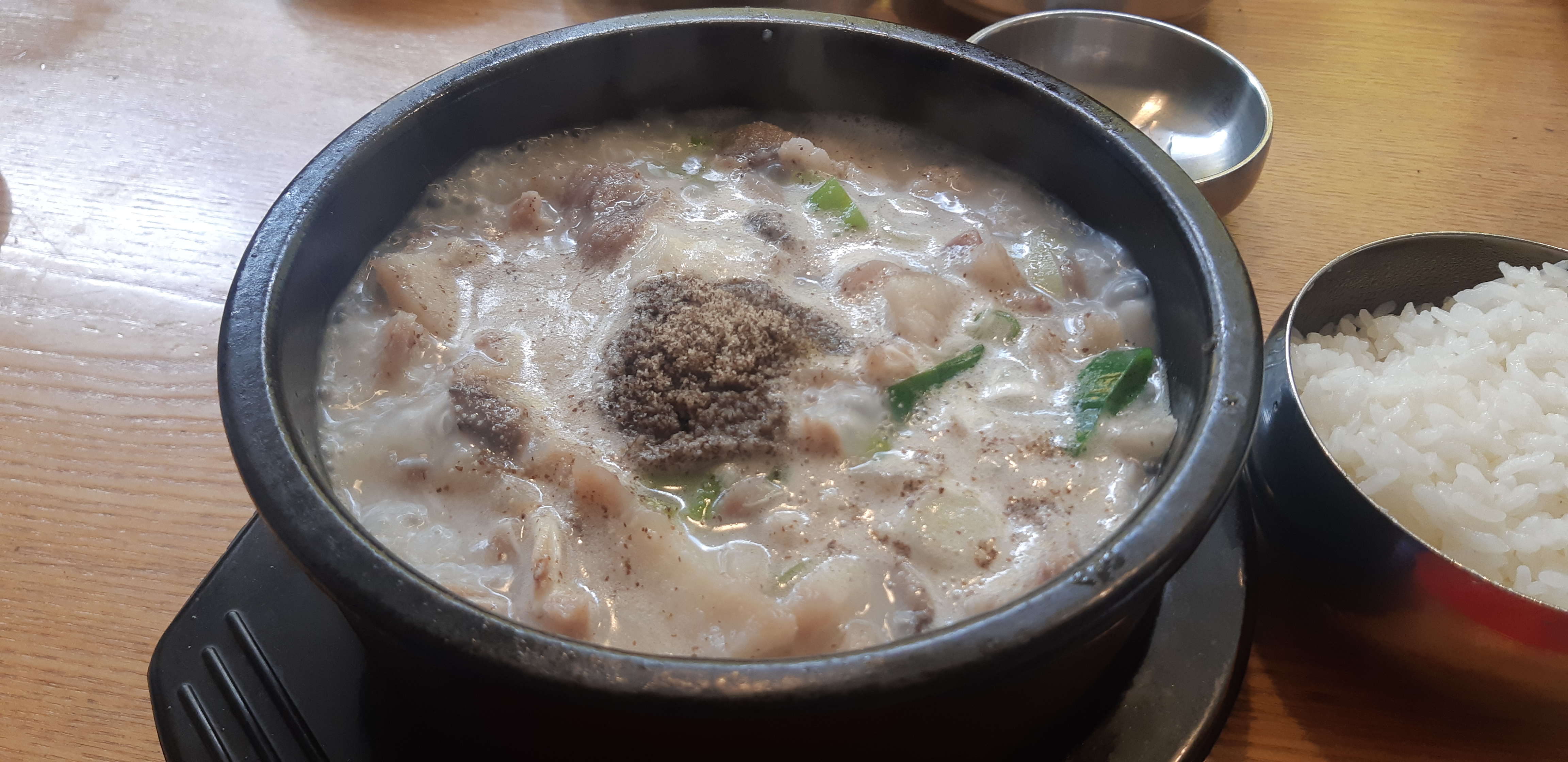 기존 뚝배기 아래에 스테인레스 사발을 받쳤다.